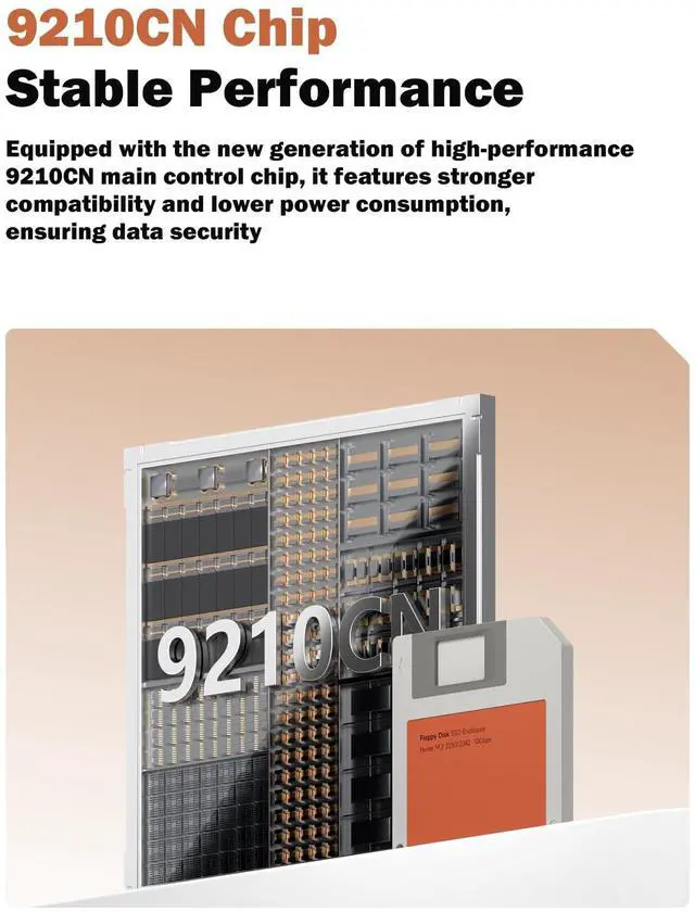 Chip: Equipped with the new generation of high-performance 9210CN main control chip, it features stronger compatibility and lower power consumption, ensuring data security