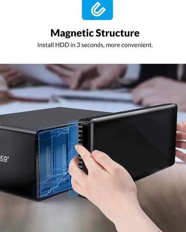 Tool-Free Installation -- The construction of the multi drive enclosure is magnetics design with 8 magntic chips on the cover, you can just spend 3 seconds to complete drive installation and prolong the service life of the cover.