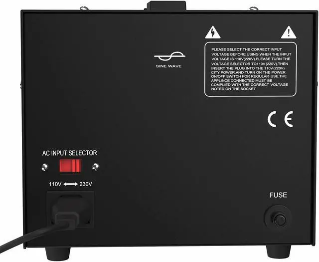 Operating InstructionsSafety Reminder: 1. Before use, please make sure that the "AC INPUT SELECTOR" button on the back of the voltage converter is consistent with the input voltage! Otherwise, the equipment may be damaged. 2. We do not recommend using it for high-power heating equipment (such as Coffee Maker, Toaster, Air Condition & Welding Equipment). If you must, we recommend 3X efficiency factor for high wattage heat producing items. This 2000 Watts voltage converter can only be used for electrical appliances below 1300 watts.