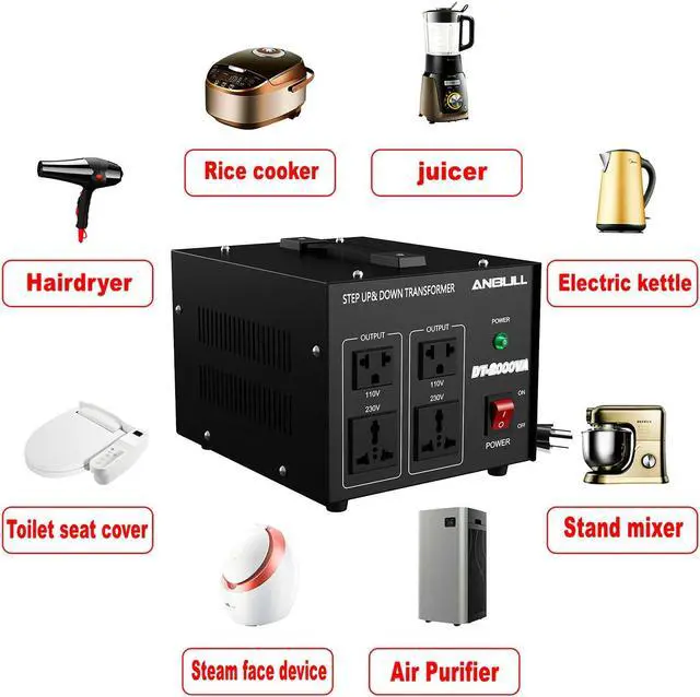 Product Features: Metal Casing, High quality material and stable coil can offer you a safe, reliable, affordable and convenient solution convert voltages. Step Up Voltage from 110V / 120 Volts to 220V / 230V / 240 Volts. Step Down Voltage from 220V / 230V / 240 Volts to 110V / 120 Volts. Can be Used in 110 Volt Countries and 220 Volt Countries. Fuse protected - Stable performance, simple operation, reliable circuit. Fuse will cut off the current if the transformer is overloaded to protect the transformer and your appliance. The transformer works without any annoying buzzing noise is more convenient. Safety switch with indicator lamp to power on / off. Upgraded Outlets ensure secured and firm grip for the appliance plug and would not get loose. Incredible 100% Full Load Capacity - Real 100% full load auto transformer, not the one 80% or even only 60% Loading Capacity.