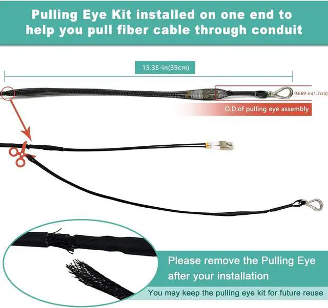 • Come with Fiber Optic Cable Pulling Eye to help you pull fiber cable through conduit