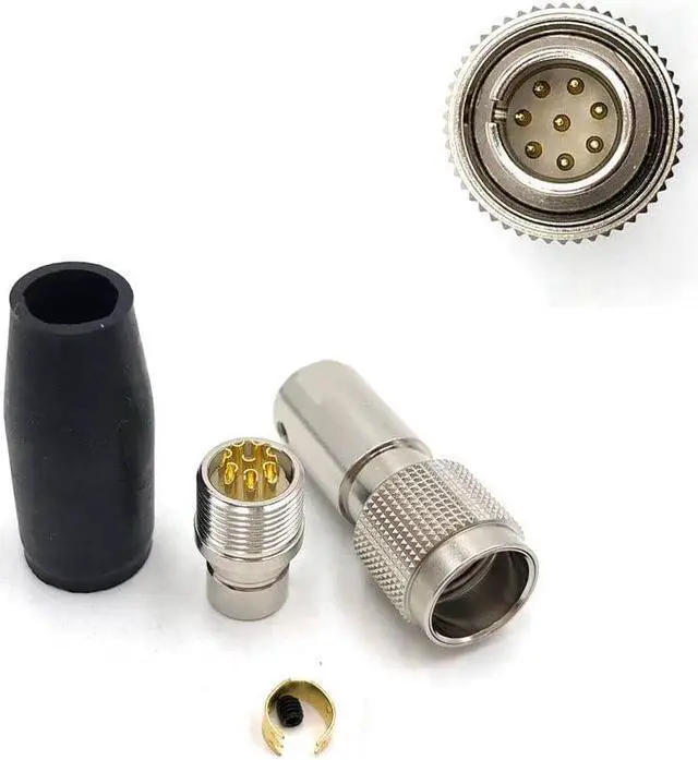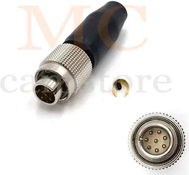 • 8 pin male connectors plug, with black cable climp, compatible for Hirose MXR-8P-8P