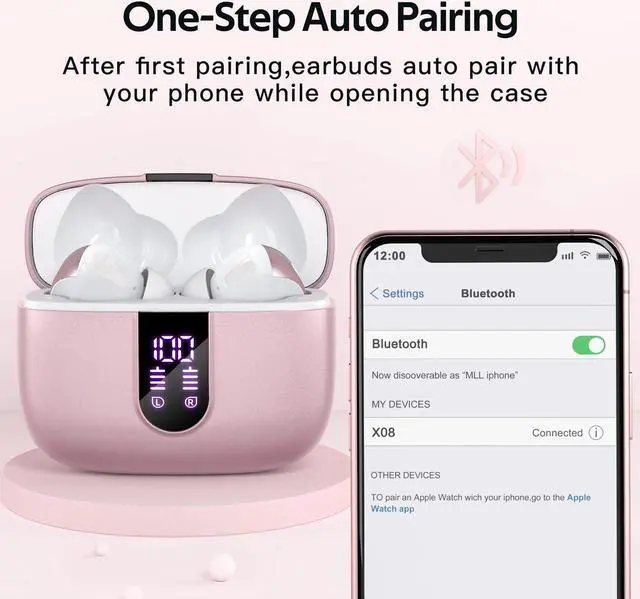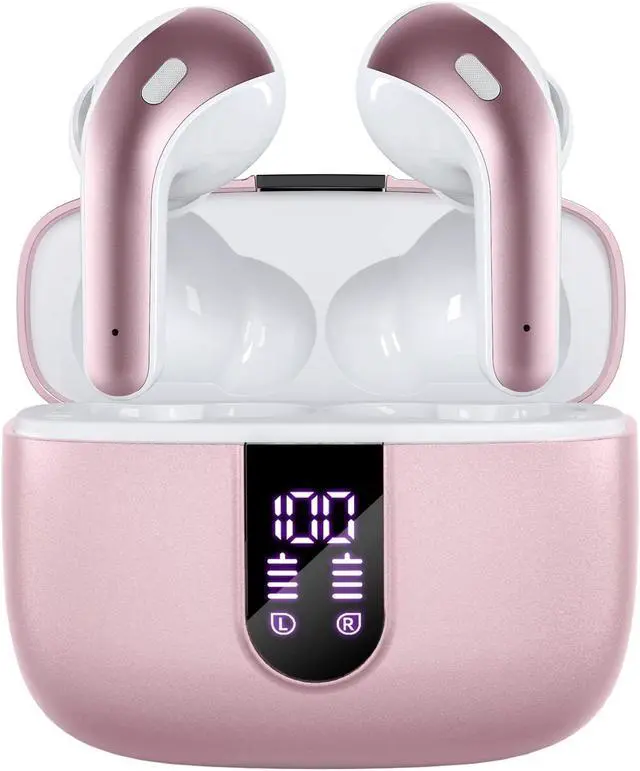 LED Power Display and 60H Playback: Dual digital LED power display outside of the case is to show the power level for charging case and earbuds. When charging for the case, the LED light will start to flash from 1 to 100. When you put earbuds into the case, then earbuds will start to be charged. 470mAh battery capacity charging case can provide extra 4 times full charging for both earbuds, each earbud can last 6H on single charging. So, you can enjoy 60H music time in total via using in turn.