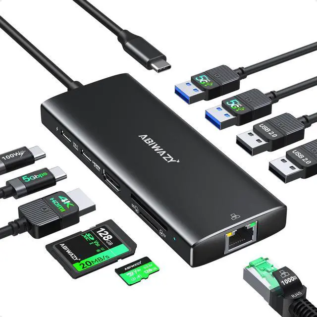 USB-C Hub(10 IN 1): This multifunctional usb c to hdmi adapter equipped with 1x4K@60Hz HDMI port,Gigabit Ethernet port, 2xUSB 3.0 ports and 2xUSB 2.0 ports, 1xUSB C data port, 1x100W PD, Micro SD/TF card reader slot. This usb c adapter is an ideal gadget for most laptops,tablets,phones with usbc/thunderbolt 3/type c port. Such as:Macbook pro Macbook Air 2024 2023 2022 M1 M2 M3 iMac iPad Pro iPhone 15 Pro/Pro Max Dell Lenovo HP laptops with usb c port