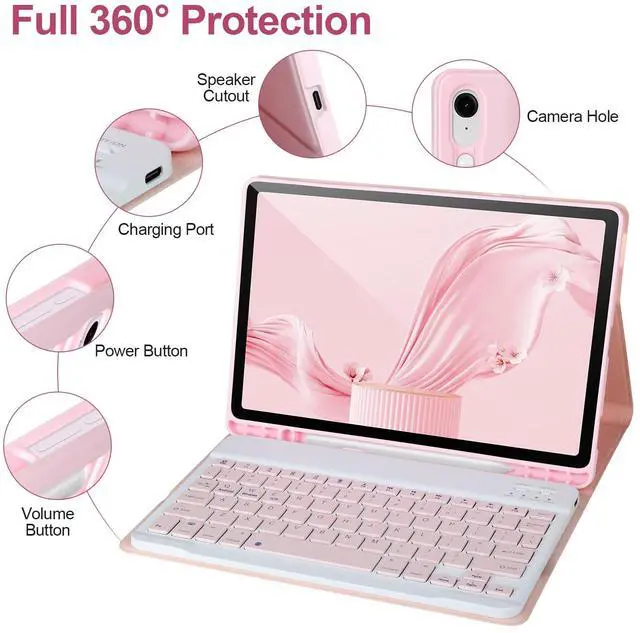 Keyboard Case for Samsung Galaxy Tab S9 FE 10.9"/ S9 11" 2023,Case with Keyboard for Samsung S9 FE with S Pen Holder,Detachable Wireless Bluetooth Keyboard for Galaxy S9 11" Auto Wake/Sleep, Pink