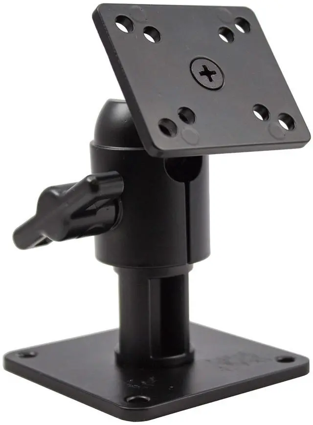 This 4" universal pedestal mount Is the ideal choice for use with a Voyager rear view LCD monitor with its 4-hole mounting pattern. Key Features For use with a Voyager rear view LCD monitor Matte black finish Solid cast/machined aluminum Thumbscrew adjustable knuckle Weight 1 lbs