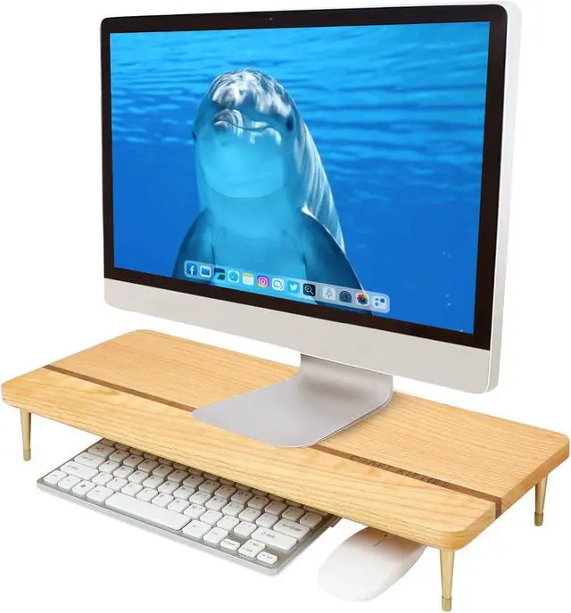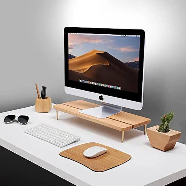 Monitor Stand Wood Riser for iMac Laptop Computer Monitor - A Sturdy Computer Stand to Elevate Your Screen and Reduce Eye Strain and Maintain Body Position(Oak Wood)