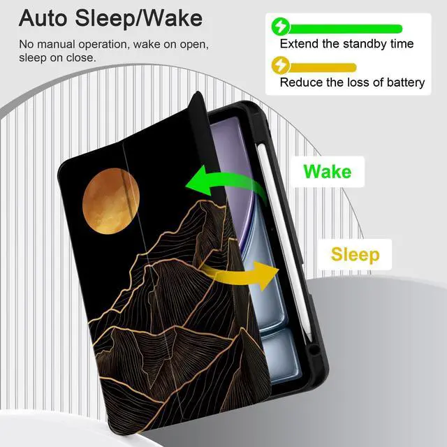 DONGKE for iPad Air 13 Inch Case M3 2025, M2 2024 - [Built-in Pencil Holder] Slim Trifold Stand Shockproof Protective Cover with Soft TPU Back Support Auto Sleep/Wake - Golden Mountain