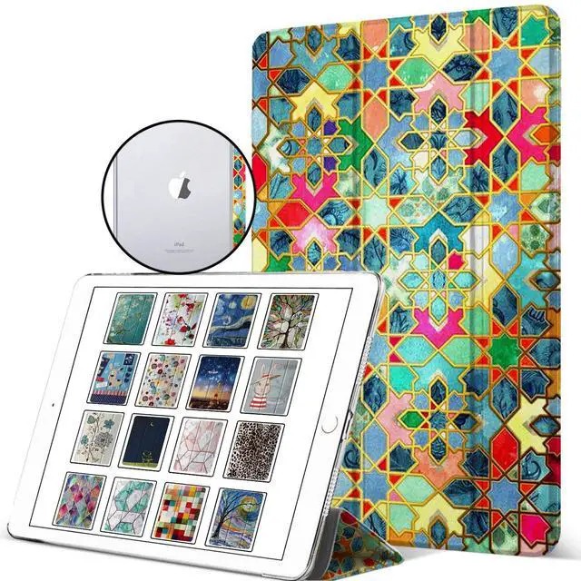 DuraSafe Cases for iPad Mini 3 2 1 Generation 7.9 Inch [3rd 2nd 1st] A1599 A1600 A1489 A1490 A1491 A1432 A1454 A1455 Trifold Printed Hard Smart PC Transparent Back Cover - Mozaic