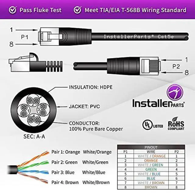 Quality 100% Copper: InstallerParts patch cables are made of 100% bare copper wire and 50 micron gold plated RJ45 plugs. We do not use CCA (copper clad aluminum wire). Each item that we offer has been hand selected by our team and achieves our standards for premium quality. Our factory-partners employ industry environmental standards such as ISO9001, ISO14001 or RoHS.