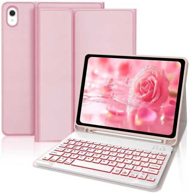 IVEOPPE for iPad 11th 10th Generation Case with Keyboard, 7 Colors Backlit Wireless Detachable Bluetooth Keyboard for iPad 11-inch A16 2025 10th Gen 10.9 Inch 2022, Flip Stand Case, Pink