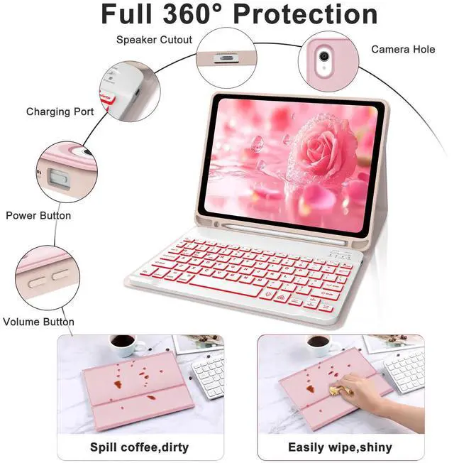 IVEOPPE for iPad 11th 10th Generation Case with Keyboard, 7 Colors Backlit Wireless Detachable Bluetooth Keyboard for iPad 11-inch A16 2025 10th Gen 10.9 Inch 2022, Flip Stand Case,Pink