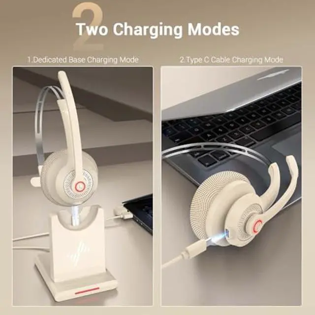 JIAMQISHI Bluetooth Headset - Wireless Headset with Noise Cancelling Microphone, V5.2 Computer Headphones with USB Dongle, Charging Base & Mic Mute for Work/Call Center/PC/Laptop/Online Class/Zoom