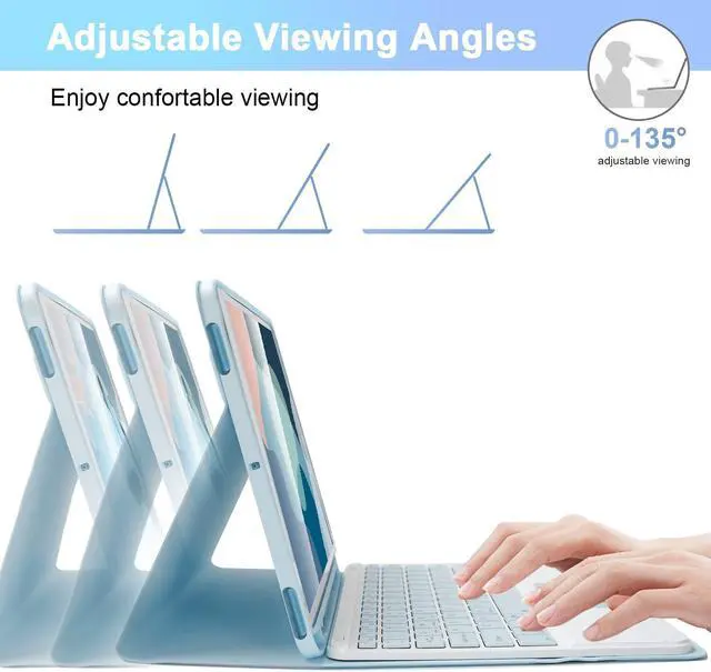[Magnetic Keyboard with Touchpad]: This case with keyboard built-in sensitive trackpad, allows you enjoy the convenience of performing multi-finger gesture control(like tap, swipe, scroll and switch apps), which level up your productivity when browse the web, edit documents and more. and up to 10M connection range. NOTE: To use the keyboard touchpad, please go to the tablet accessibility setting to turn on the assistive touch function first! IOS 13.2.2 and above be supported.