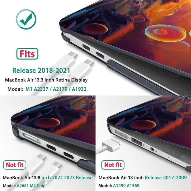 Designed ONLY to be compatible with 2021 2020 2019 2018 Release MacBook Air 13 inch Model: A2337 / A2179 / A1932 Apple M1 Chip with Retina display Fits Touch ID. Pls verify Model No. the underside of MacBook before buying