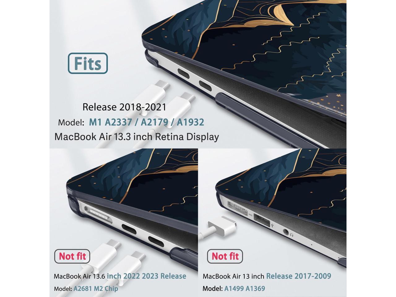 - Designed ONLY to be compatible with 2021 2020 2019 2018 Release MacBook Air 13 inch Model: A2337 / A2179 / A1932 Apple M1 Chip with Retina display Fits Touch ID. Pls verify Model No. the underside of MacBook before buying