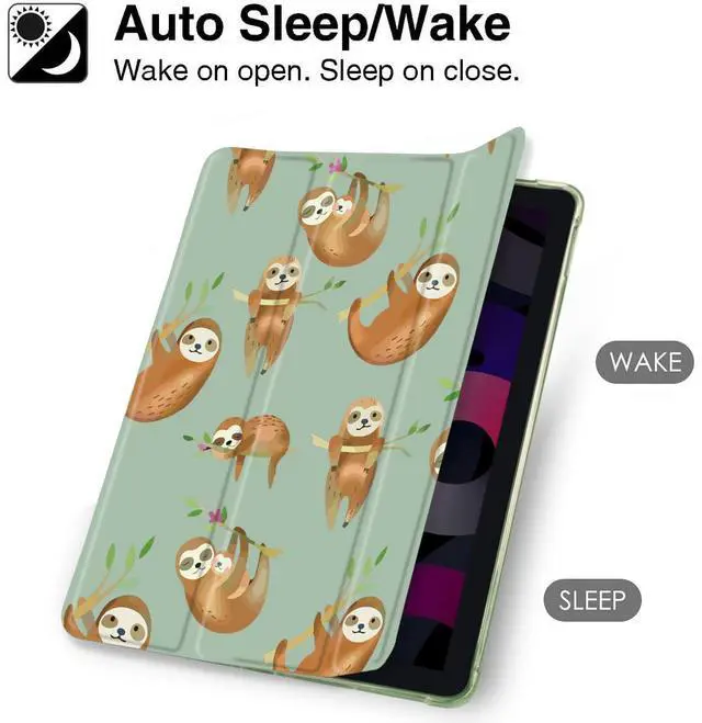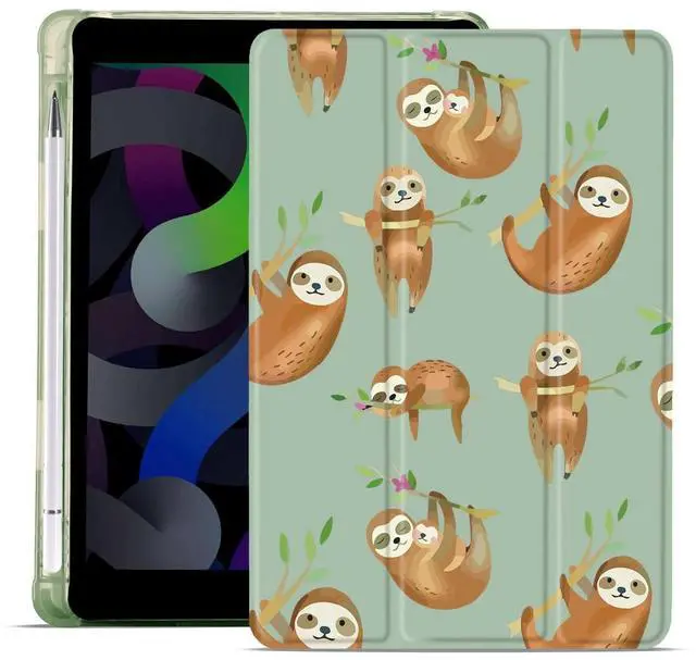 MAYCARI Cute Kawaii Sloth Compatible with iPad Pro 11 inch Case with Pencil Holder, Auto Sleep/Wake, Green Girly Cartoon Soft TPU Back Cover for 11 inch iPad Pro(2022/2021/2020/2018)