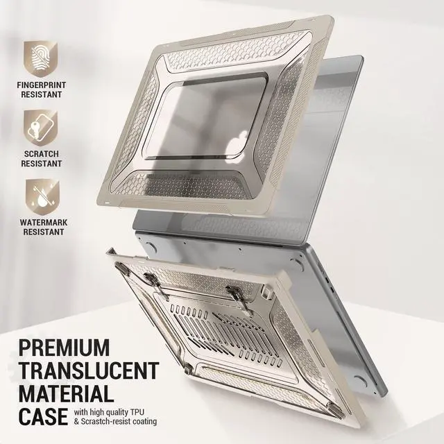 SEYMAC stock Case for MacBook Pro 16 inch 2024-2021 A3403 A3186 A2991 A2780 A2485, Shock-Absorbing Protection with Folding Stand &Mouse Pad/Bag Case for MacBook Pro 16'' M4/M3/M2/M1 (Beige)