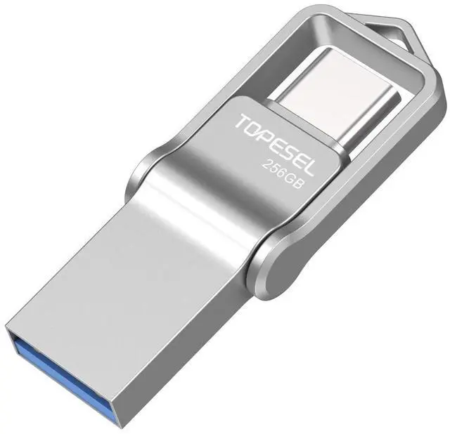 TOPESEL 256GB USB-C Flash Drive - Dual USB 3.0, Waterproof, Portable for Computer, Mac, Smartphone, Tablet