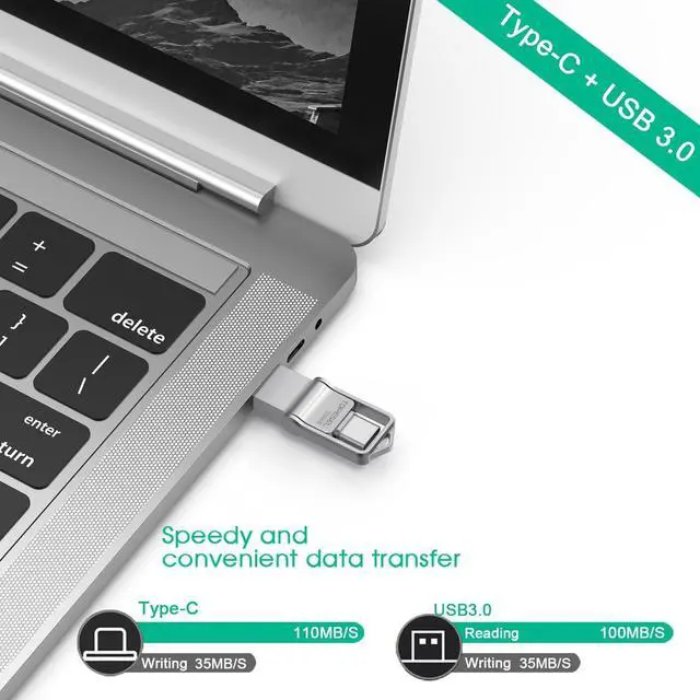 Plug and Play: It is simple and easy to use. No need to install any software, simply insert the USB C flash drive into the USB port of your computer, smartphone, tablet or other device and start storing, backing up and transferring data between devices and locations