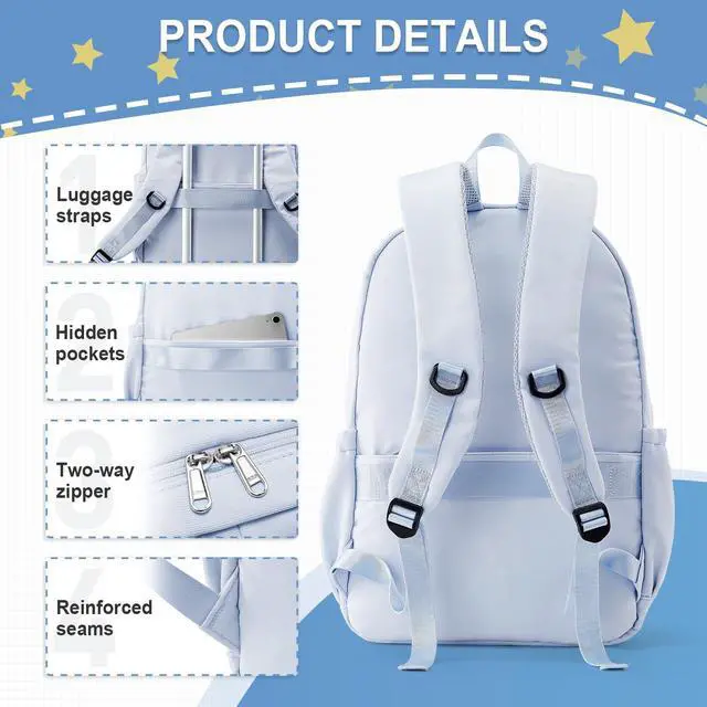 weradar School Backpack For Women Men, Lightweight Casual Daypack College Backpacks, Aesthetic Students Bookbag, Backpack With Lots Of Pockets, Cute High School Bag For Boys Girls (Blue)