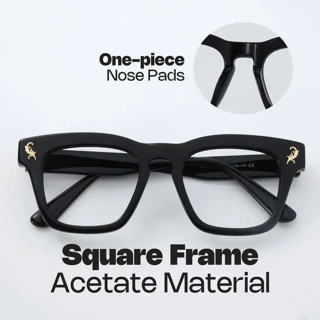 [Premium Material]: Crafted from high-quality Acetate material, black designer glasses are durable and lightweight, providing both comfort and durability for daily wear.