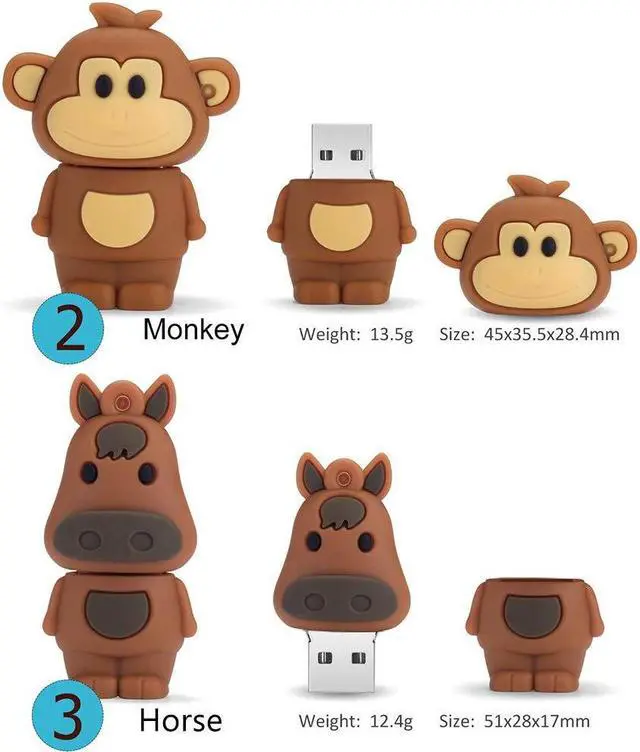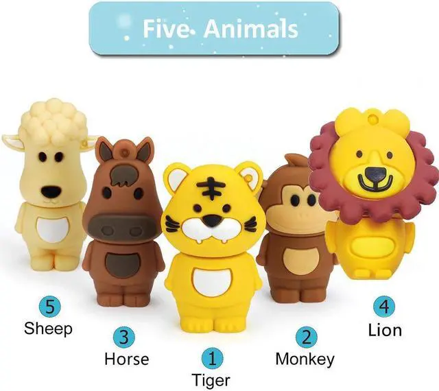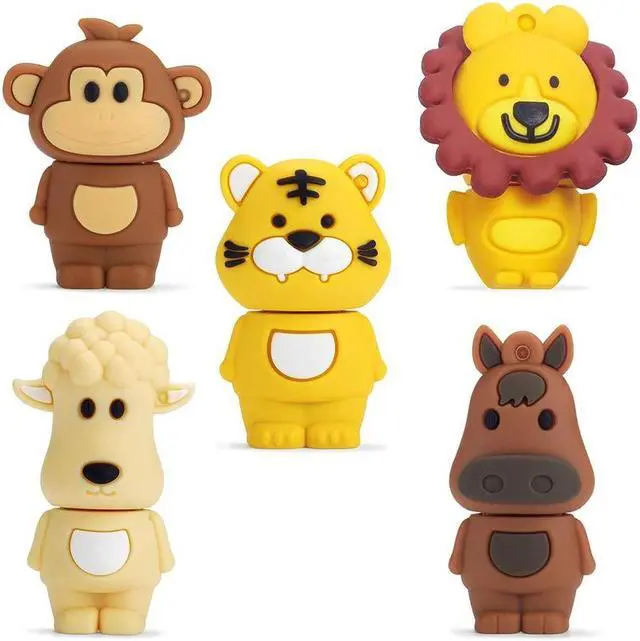 16GB * 5. Pack of 5 Pcs. Lovelyanimalspattern: Include goat*1,lion*1,tiger*1, horse*1,monkey*1. The best gift for students and children.
