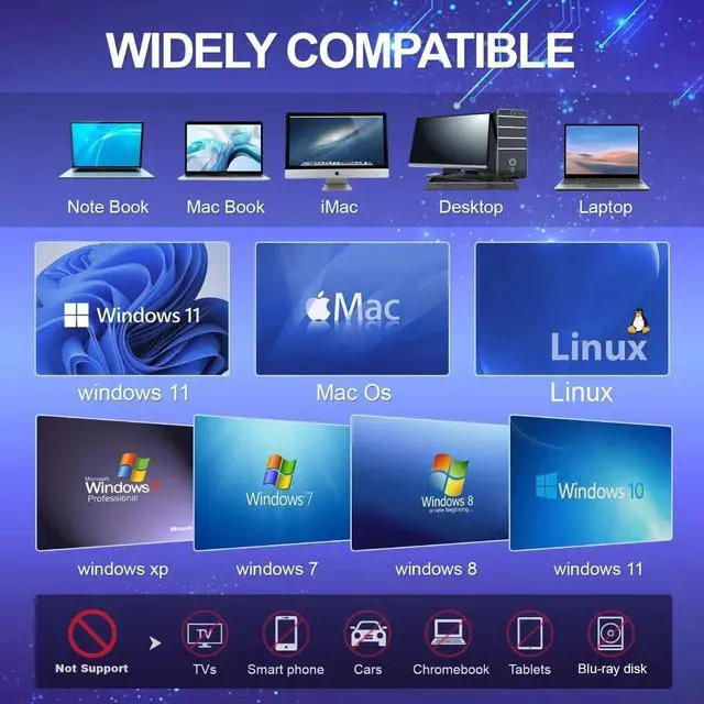 USB 3.0 HIGH-SPEED DATA TRANSFERCD Burner with high speed USB 3.0 technology, many of the port cluster connectors are labelled by blue color and backward compatible with USB 2.0. USB 3.0 is an updated version of USB 2.0 which provides higher data transfer rates up to 5 Gigabits/S (625MB/S). It is approximately 10 times faster than USB 2.0. Besides that, The cd drive offers Max 8x DVDR Read Speed and Max 24x CD Write/Read speed, faster than you expected.