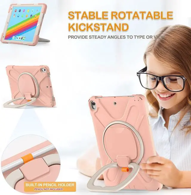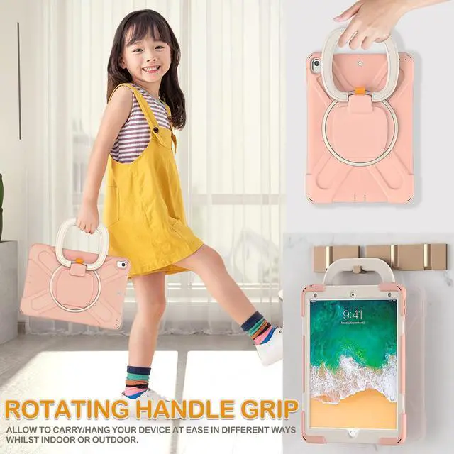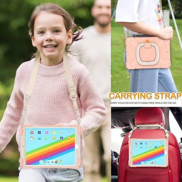 Multi-Function Features: 360° rotating / 180° folding Grip can be used as a handle, easy to hang your iPad in kitchen, washroom, bedroom; Kickstand is stable enough to stand on different surfaces for children to view. And with a adjustable shoulder strap, it is convenient for you to carry and hang everywhere