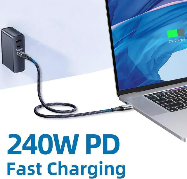 240W PD Fast Charging: 20Gbps for Thunderbolt 4 Cable 15ft support 240W (48V/5A) PD 3.1 fast charging. 240W backward compatible. *Note: If you want to achieve faster charging speed, make sure your device and charger support it.