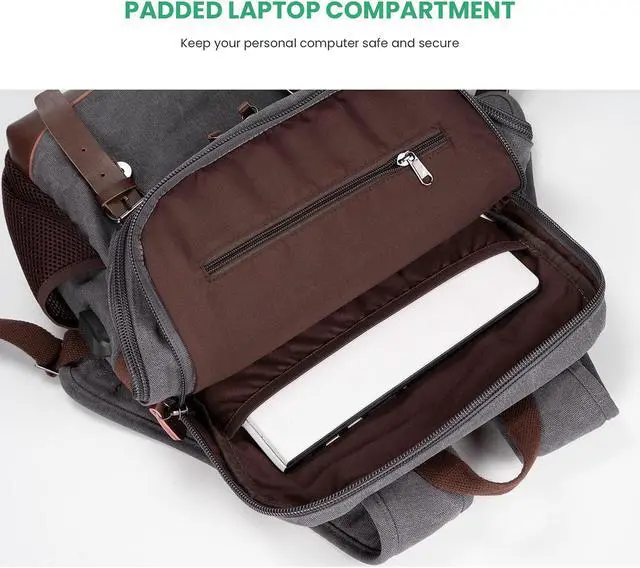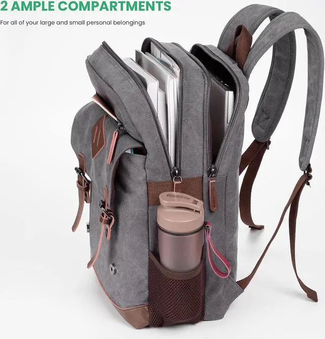 Modoker Vintage Backpack for Men Women, Canvas Bookpack Fits Most 15.6 Inches Computer and Tablets, Rucksack Backpack with USB Charging Port, Grey