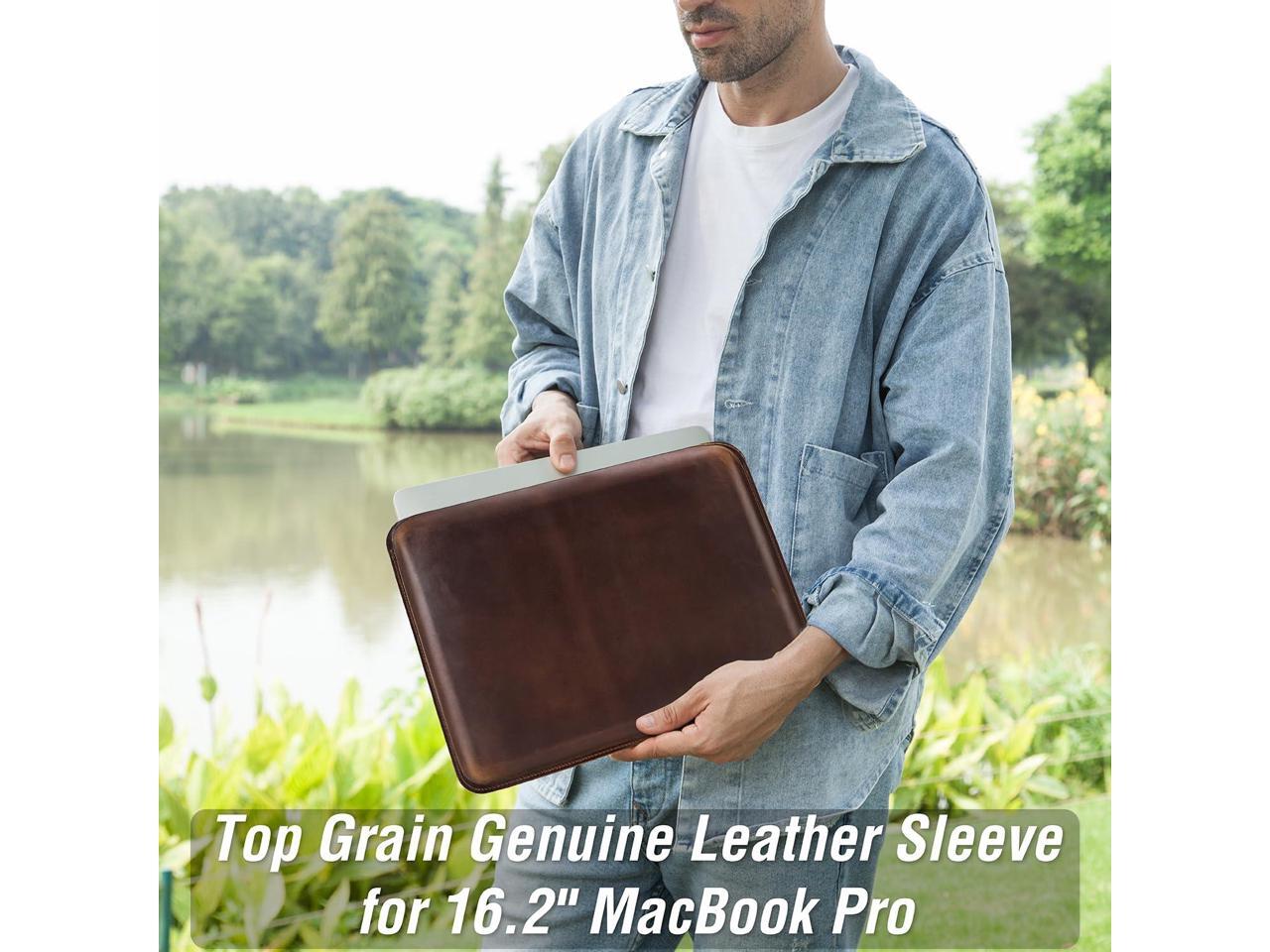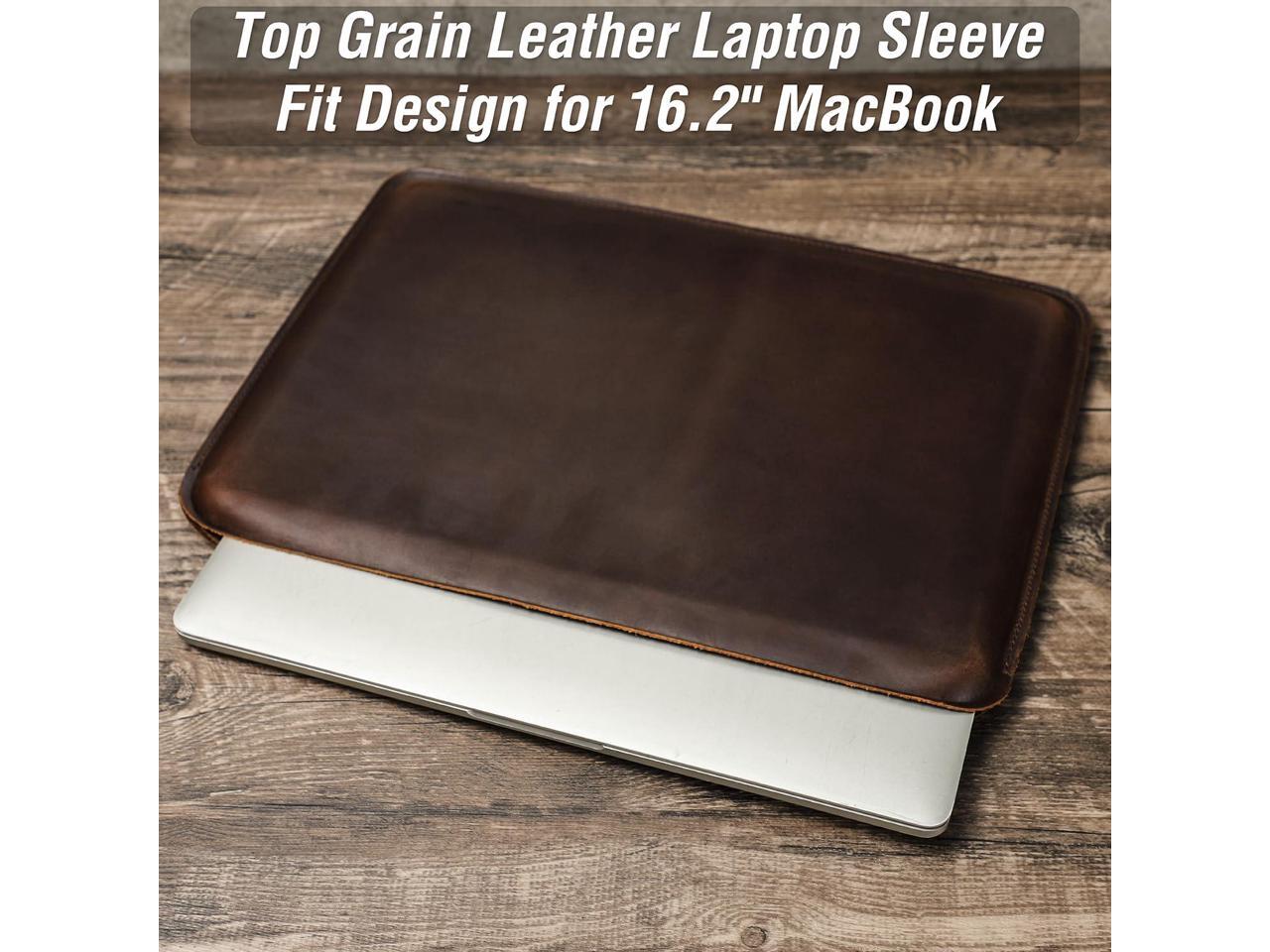 CataPurus Top Grain Leather 16.2" Slim PC Sleeve Case, Solid Vintage Design, Handmade, Compatible with MacBook Pro 16.2" A2485 M1 Max 15" Touch Bar A2141 A1707 Pro 16" Touch ID A1990, Coffee 16.2 Inch