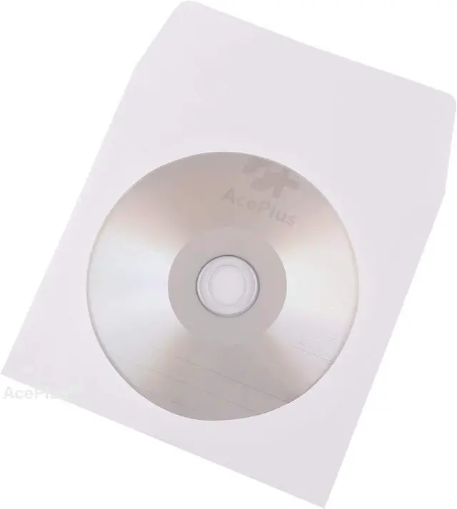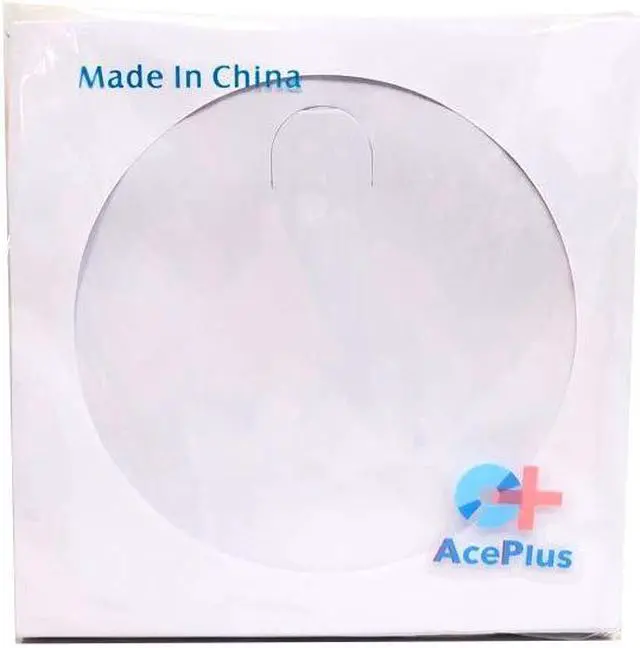 1000 pieces of AcePlus 80g CD/DVD Paper Sleeves with Clear Window and Flap. Economy Weight 1 Box includes 10 packs of 100 Sleeves.