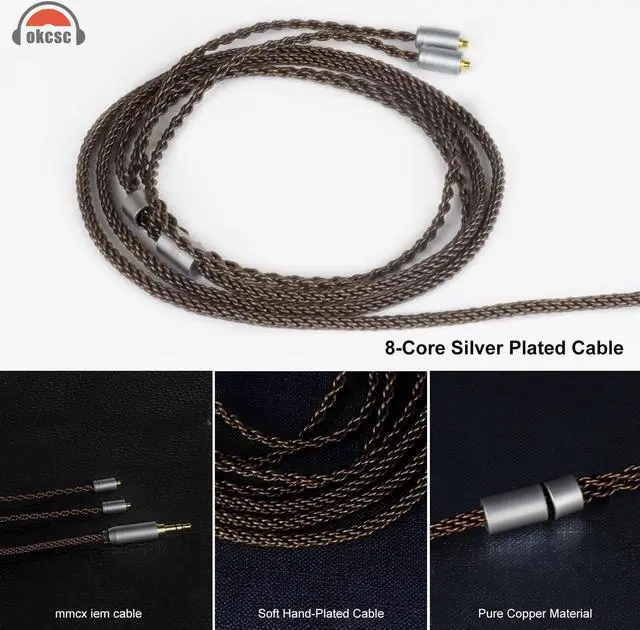 okcsc MMCX Cable Replacement Upgrade for Shure SE215, SE315, SE425, SE535, SE535LTD, SE846, AONIC3, AONIC4 - 8 Core OFC Audio Cable, MMCX Connector, 4 Feet Length with 4.4 mm Plug