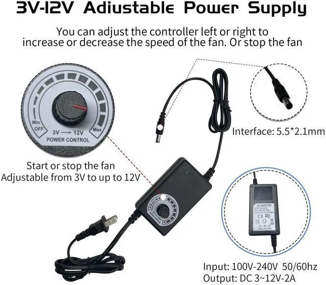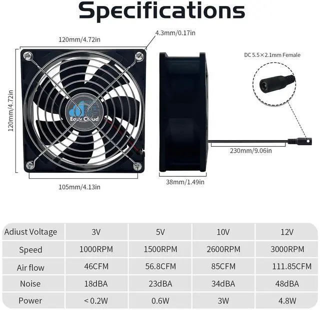 AC PlugDual-ball bearings have a lifespan of 50,000 hours. Easy Cloud 120mm computer fan comes with 3V to 12V multi-speed controller, increases maximum fan speed and powers the fan from an AC outlet.. Just plug it into an outlet and start the fan
