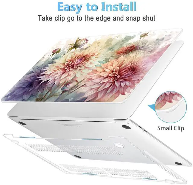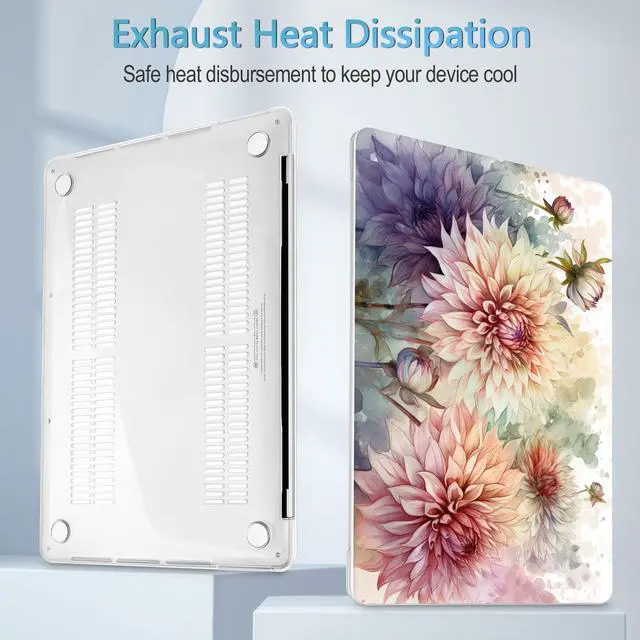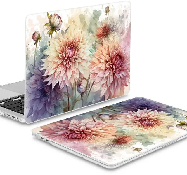 Mektron Designed Case for MacBook Pro 16 Inch A2141 Cover 2019 Release 16" with Liquid Retina Display/Touch ID, Plastic Hard Shell with Keyboard Skin & Screen Protector, Watercolor Dahlias