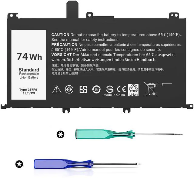 Packages includes: 1x laptop battery, 2 x Screwdrivers, 1x Instruction for Laptop Battery Compatible ModelsCompatible with Dell Inspiron 15 5000 7000 Series Gaming Laptop; for Dell Inspiron 15 5576 5577 7566 7567 7557 7559 i5577-7342blk-pus i7559-7512gry i7559-3763blk i7559-5012GRY i7559-763blk Notebook Battery; for Dell INS15PD-1548B INS15PD-1548R INS15PD-1748B INS15PD-1748R INS15PD-2548R INS15PD-2548B INS15PD-2748R INS15PD-3948B INS15PD-1848B INS15PD-3848B INS15PD-2748B Compatible Part Number Compatible with 357F9 0357F9 0GFJ6 00GFJ6 71JF4 071JF4 P57F P57F003 P65F001 P65F 9470M Quality and Certification Our Laptop Battery are assembled from top quality material and circuit boards to ensure fast charges and low power consumption, Overcharge and Overdischarge Circuit Protection With built-in Overcharge and Overdischarge Circuit Protection, Over-temperature and Short-circuit, Protection, and meets CE/FCC/ROHS/UL certified standards. It is a brand-new product from the manufacturer and supports up to 1000 recharge cycles. Excellent After-Sales Servicewe stand behind our product a 12-month for quality-related issues. team is available 24/7 to assist you via email