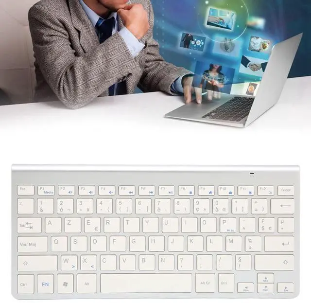 ASHATA Wireless USB-C Keyboard, 2.4g Portable Bilingual Keyboard (French-English), Slim Design for Desktop, Laptop, Tablet