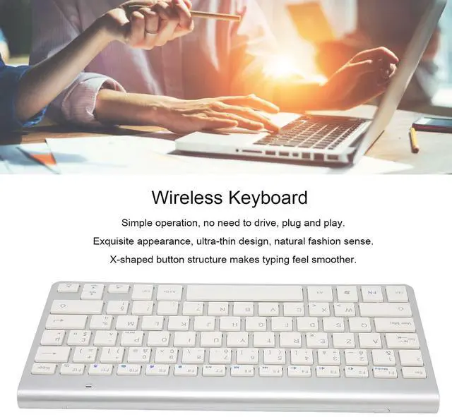 ASHATA Wireless USB-C Keyboard, 2.4 g Portable Bilingual Keyboard (French-English), Slim Design for Desktop, Laptop, Tablet