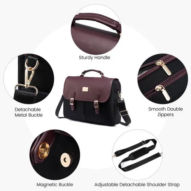 LOVEVOOK Laptop Bag for Women, 15.6 inch Large Capacity Computer Briefcase Case, Crossbody Messenger Shoulder Bag, Office Business Work Tote Bags Purse for Travel Gifts, Deep Plum-black