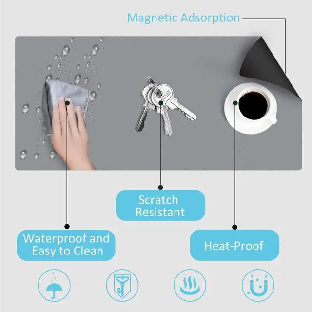 Magnetic Dry Erase Desk Mat for Making Plans,31.5"x15.7" Writable & Erasable Desk Mouse Pad with 2 Markers & 2 Cloths,Waterproof Writing Desk Pad for Office Home School Classroom (Pale Gray)