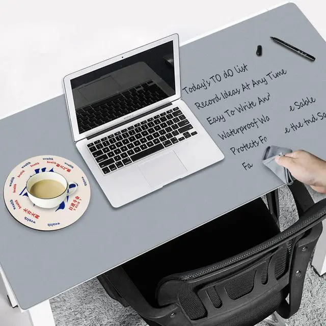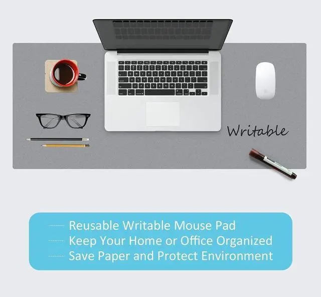 Magnetic Dry Erase Desk Mat for Making Plans, 31.5" x 15.7" Writable & Erasable Desk Mouse Pad with 2 Markers & 2 Cloths, Waterproof Writing Desk Pad for Office Home School Classroom (Pale Gray)