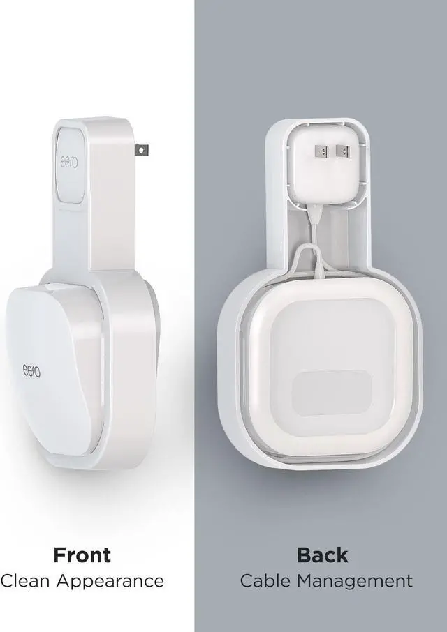 Easy to Move: You can easily be moved from room to room,all messy wires are hided on the back of the for eero 6, mesh plug mount, you can plug in your eero wifi router to any electrical outlets in your home.