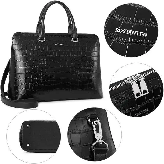 BOSTANTEN Briefcase for Women Leather 15.6 inch Laptop Shoulder Bags Office Work Crossbody Handbags Crocodile Pattern Black