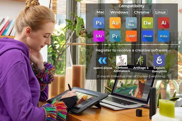 Universal Compatibility: It's compatible with Windows 7/8/10/11, Mac 10.10 or later, Linux. Compatible with Photoshop, Illustrator, SAI, Painter, MediBang, Clip Studio, and more. It's ideal for digital drawing, animation, sketching, photo editing, 3D sculpting, and more (XP-PEN Artist12 drawing tablet must be connected to a computer to work).
