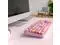 MOWUX Computer Keyboard Wired, Plug and Play USB Retro Round Typewriter Keyboard, Full Size Wired Keyboard with Foldable Stands for Laptop and Office PC- Pink Colorful