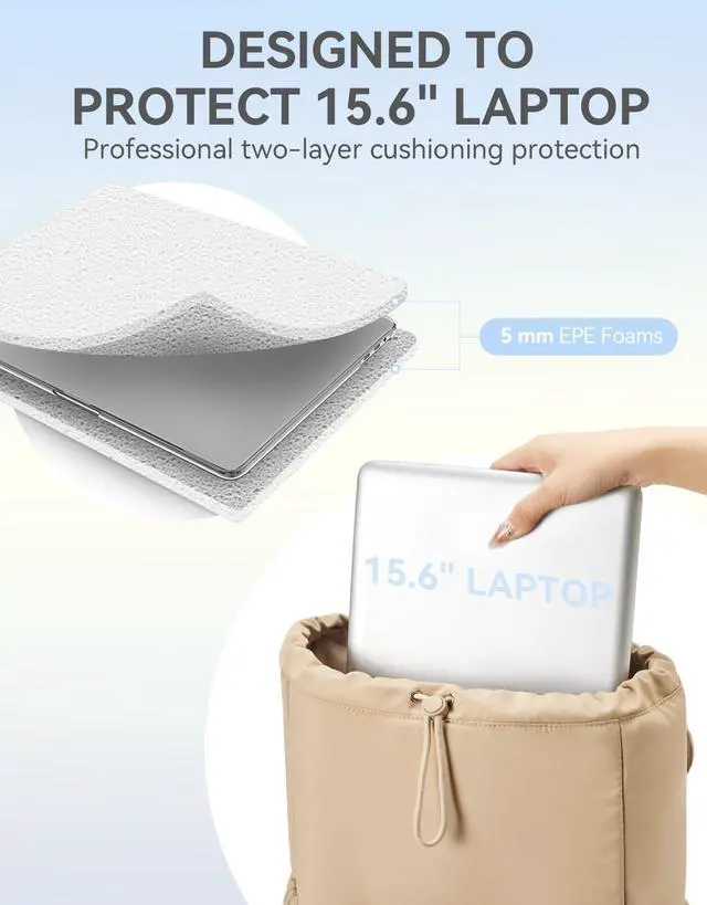 Versatile Pockets and Easy Access: This drawstring backpack features a large, flip-up opening design, allowing you to easily access your essentials without having to dig through your bag. It is equipped with 1 large main compartment, 1 padded laptop compartment, 3 pen slots, 1 inner zipper pocket, 3 deep slip pockets, 1 front RFID zipper pocket with a card slot, 2 elastic side pockets, and 1 anti-theft pocket