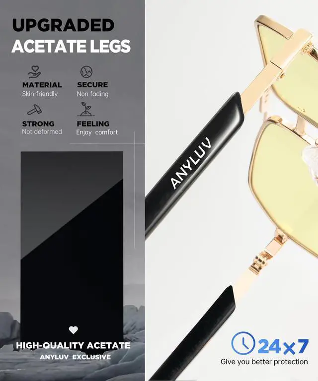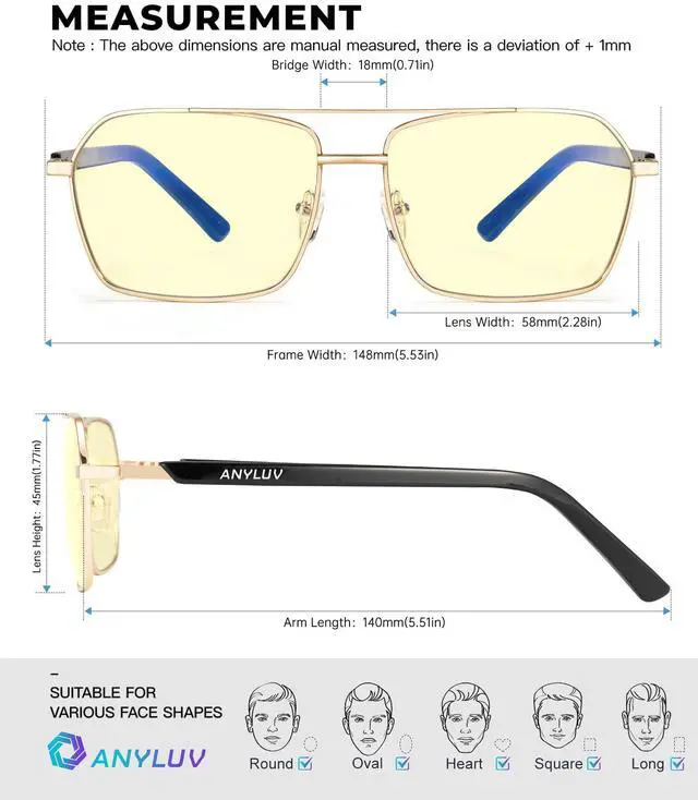 Trendy Blue Light Glasses Designed with square slim frame and ANYLUV logo decor temple, very exquisite and fashion style. These anti blue light glasses help show a sophisticated look that complement any outfits, whether you're working or casual daily life