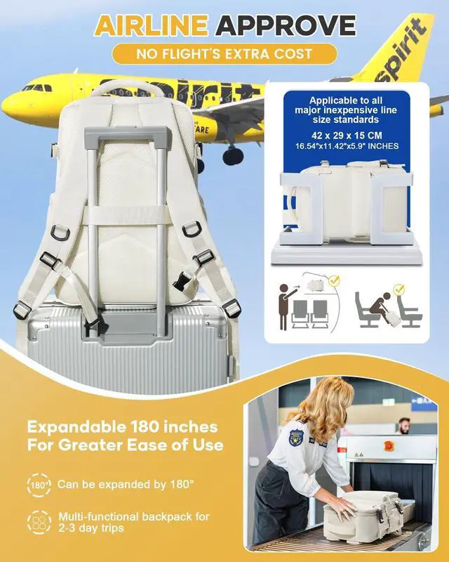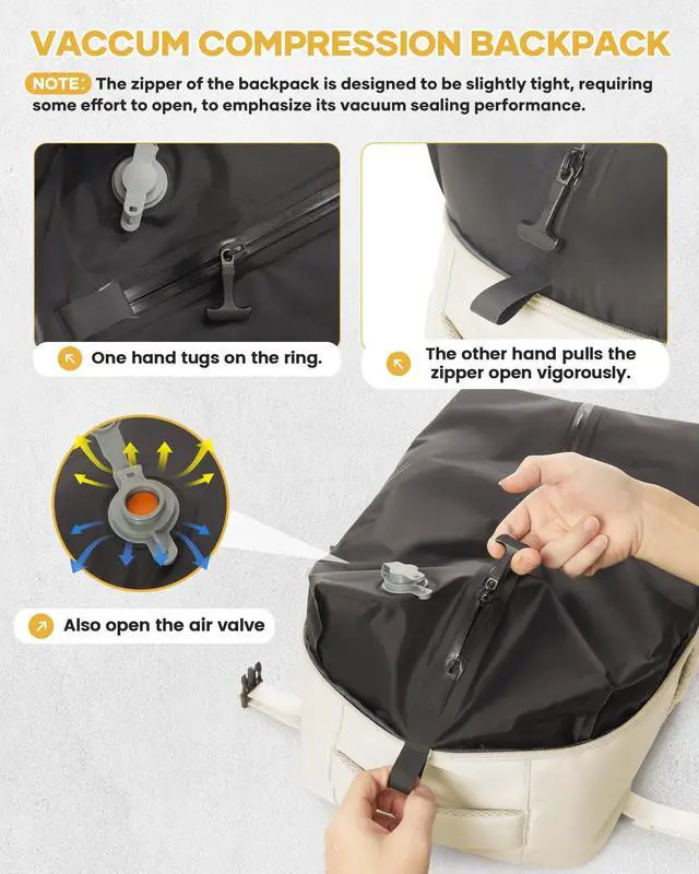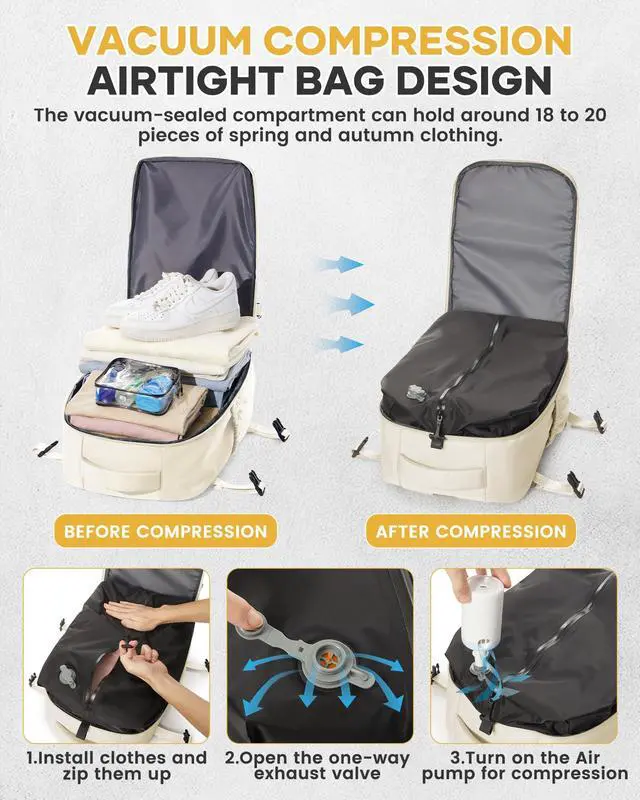 VACUUM BACKPACK - The backpack size is about 42*28*15CM (manual measurement may have a slight error), easy to organize suitcase-grade items, travel with more peace of mind.