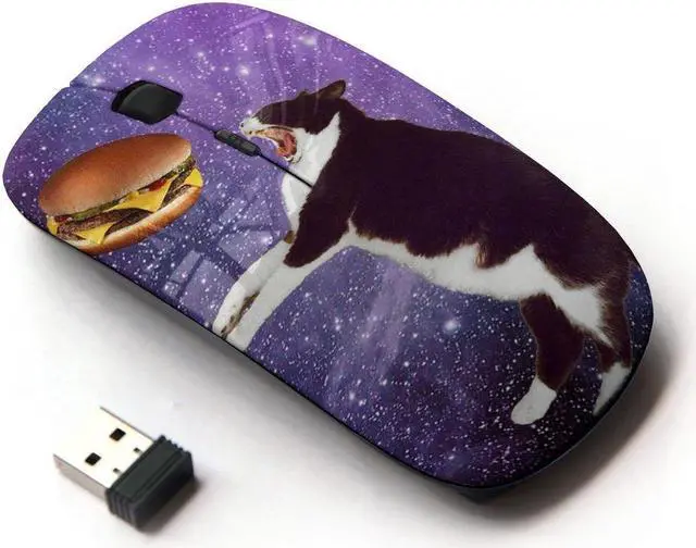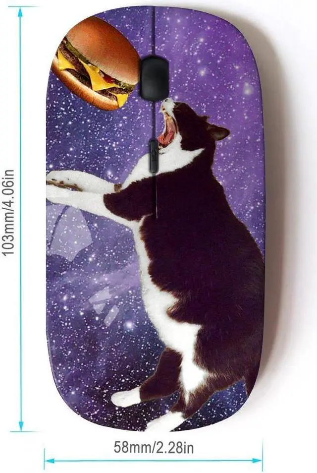 • STPlus Fat Cat Eating Burger in Space Funny 2.4 GHz Wireless Mouse with Ergonomic Design and Nano Receiver